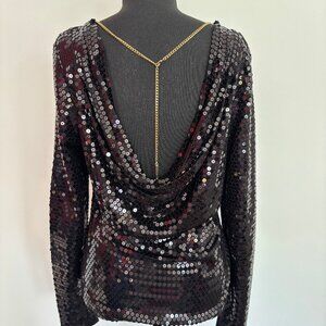 Elegant and versatile. Pairs well with a sexy skirt or a pair of jeans. Gold chain across the back. Scooped neck. Michael Kors is elegance