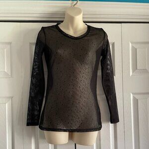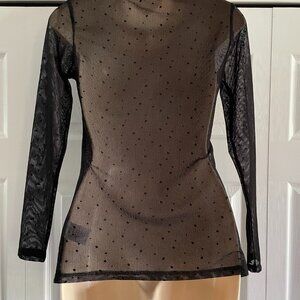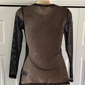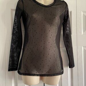 Black Sheer Long Sleeve Dot Party Top Size Small