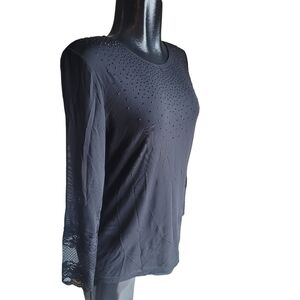 Black Sheer Long Sleeve with Lace and Bead Detailing M