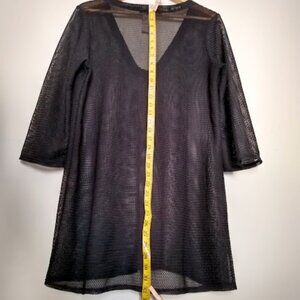 Black Sheer Mesh Swimsuit Cover 3/4 Sleeves Size L