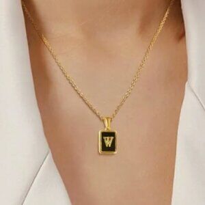 Black Shell and Gold Letter T Necklace Stainless Steel Initial T