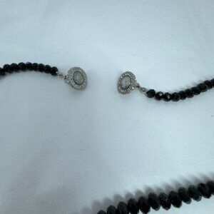 Black Shinny Glass Faceted Beads Necklace 18 inches Magnetic Clasp Prom Wedding