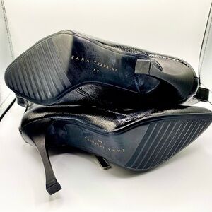 Never worn as it was an impulsive purchase from ZARA:) High Heels Bit higher than Ankles, black, shiny and very classy. US8/EU39.