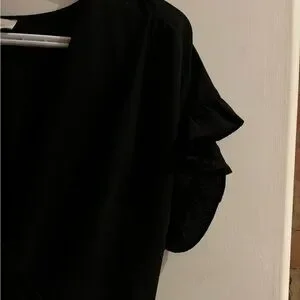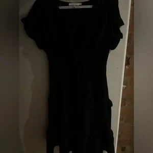 Cute black short ruffled dress 🤍Monteau Los Angeles size Medium 🤍ruffle bottom and sleeves 🤍sweet heart neckline 🤍belt loops