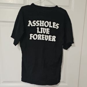 This black tee features a classic crew neck and short sleeves, perfect for everyday casual wear or letting your enemies know that you're here to stay. Made from comfortable material, it offers a sleek and uniform look, making it a versatile addition to any wardrobe.