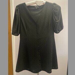Black, short sleeve, eyelet dress, with buttons down the front.