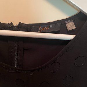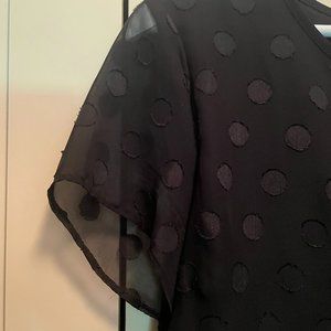 Polka dot sheer upper attached over shift dress with elasticated waist, zip up at the back