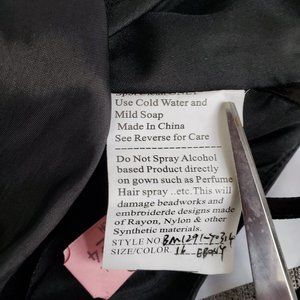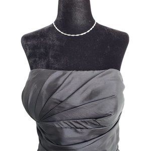 Fabulous fitted black formal dress. Fabric has a slight sheen ... satin-like. Sexy corsetted back detail provides for a figure hugging fit. Padded bust area so no need for a strapless bra. Add a pair of sexy heels & go for an evening out or any formal occasion! In excellent pre-owned condition ... dry cleaning tag still on it!