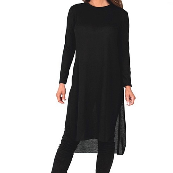 NWOT! Black Side-Slit Tunic. Sashay into casual chic with this long sleeve tunic that offers dramatic slits at the sides and a hint of stretch for all day comfort.