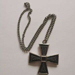 Black Silver Maltese Cross Pendant Necklace Iron Cross Chunky Vintage
