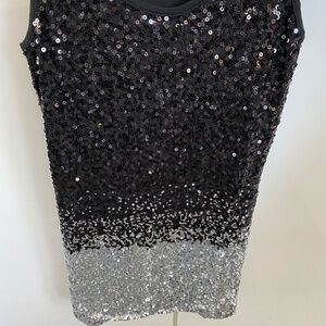 Purchased new, worn once, excellent condition, black and silver sequins on a soft, stretchy fabric. BEDO, size Medium. Perfect for holiday party, Christmas or New Year's.