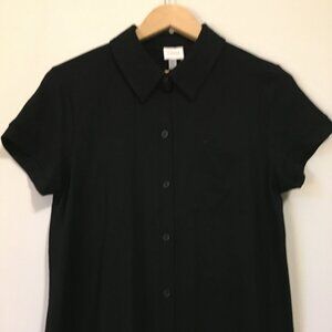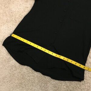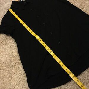 Very good preowned condition, black, stretchy, viscose, short sleeve dress shirt by Cupio. Pairs easily with almost everything and the perfect finishing touch to any ensemble.