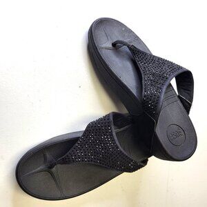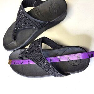 Black Size 8 Gold Crystal Sandals Wedge Heel Arch Support Comfy Flip Flops