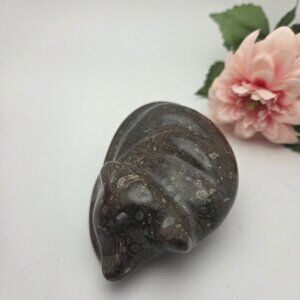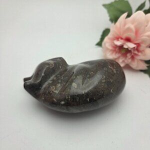 Black Sleeping Cat Kitty Natural Carved Fossil Stone Pakistan