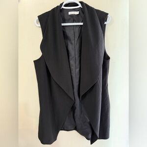 Stylish black sleeveless vest with a draped front. Perfect for layering.