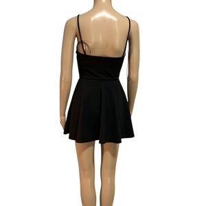 Chic black sleeveless dress featuring a bow detail on the front. Perfect for any occasion.
