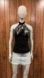 This chic black tank top showcases a sleeveless design with striking cut-out and embellished details. Its fitted silhouette and classic tank style make it a versatile addition to any wardrobe. Ideal for elevating both casual and evening ensembles.