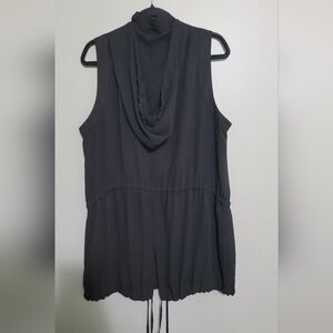 Black Sleeveless Sheer Hooded Vest/Tunic Plus Size 1X Cinch Waist