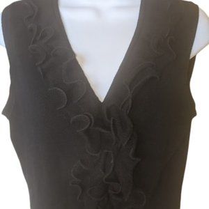Black Sleeveless Sweater with Vertical Frill Size XL