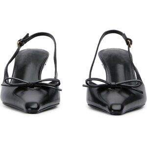 Black Slingback Women's Bow Pointed Toe Kitten Heel Backless Stiletto Sandals