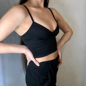 Black Slinky Strappy V Neck Crop Top Shiny Material