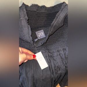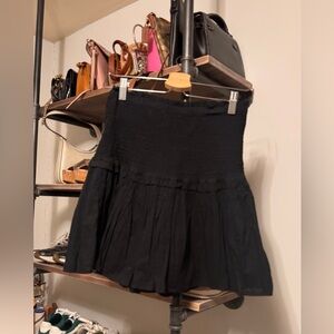 Chic black smocked mini skirt with pleated details. Perfect for casual outings.