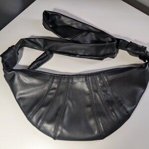 Black Soft Vegan Leather Croissant Shoulder Bag, NWOT, Silver Zipper
