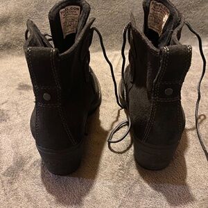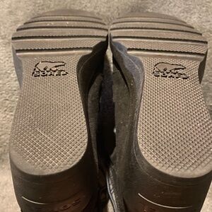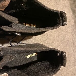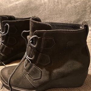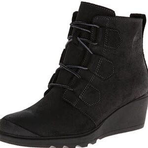 Sorel Toronto Lace Up Wedge Boot This waterproof, oiled-suede boot takes its inspiration from— where else—the stylish city of Toronto. An easy wedge platform keeps the look fresh, while the soft knit lining and strategic foam inserts keep your feet comfortable no matter what the weather. The boots are in fantastic condition - see the picture of the bottom