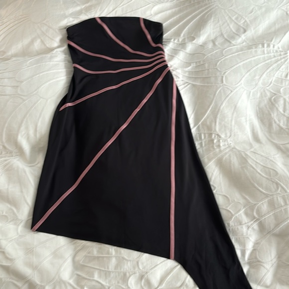 Black Strapless Dress Asymmetrical Stretchy Size Medium