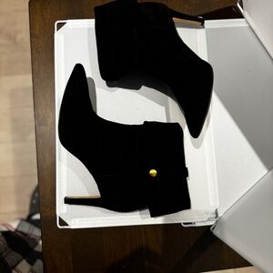 Black Suede Booties, Size 8.5, adjustable bootie hight with snap on bottom