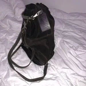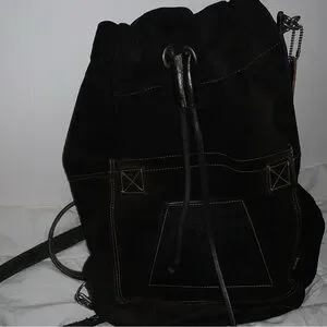 Black Suede Drawstring Backpack - Unbranded