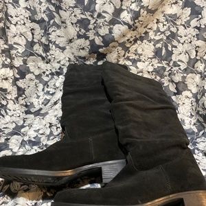 Beautiful, super supple midnight black suede boots in excellent, new condition. Never worn they’ve just been stored. Slight marks on soles are from floor when tried on for photos. Variations in the colour of uppers is due to nap of suede but they are a beautiful deep black.