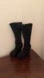 Stylish black suede knee-high boots with a wedge heel. Perfect for any occasion.