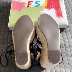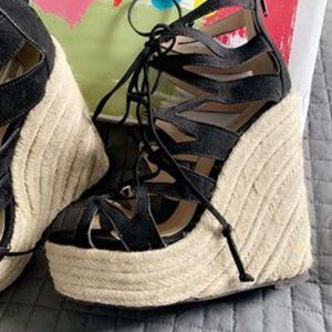 Black Suede Lace up Wedge Heels Peep Toe Platform