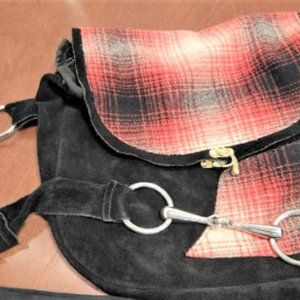 Black Suede PURSE Cowhide Purse SADDLE BAG Crossbody Purse Messenger Bag