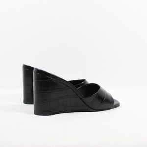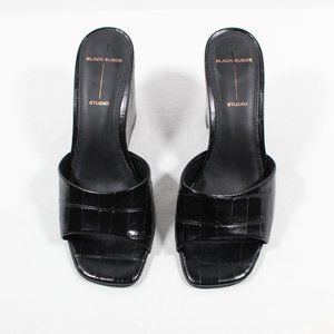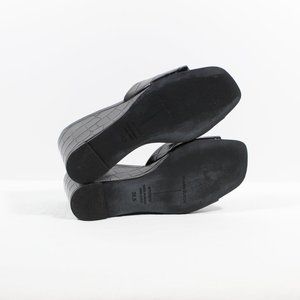 Black Suede Studio Chloe Wedge Sandal - Black Croc 36.5EU