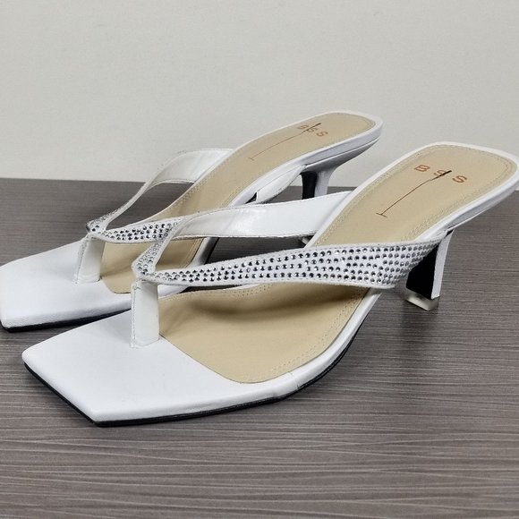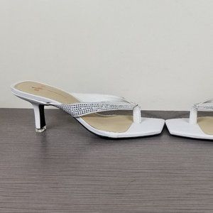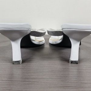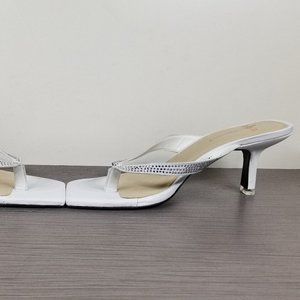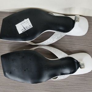 Black Suede Studio Crystal Embellished Sandal, White Leather, Womens Size 7.5
