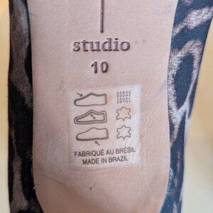 Pre-owned Black Suede Studio leopard printed sock boots featuring a pointed toe, pull-on entry, leather insole, and a covered stiletto heel.