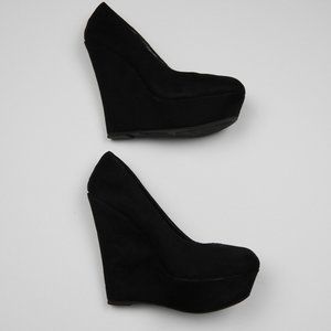Never Worn. Black suede wedge heels.1.25 inch platform. 5 inch heel.