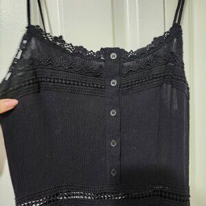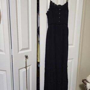 Maxi dress with button detail from bust to waist, lace eyelet accents on waist and skirt. Side zipper and adjustable straps.