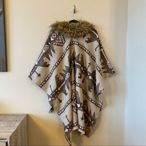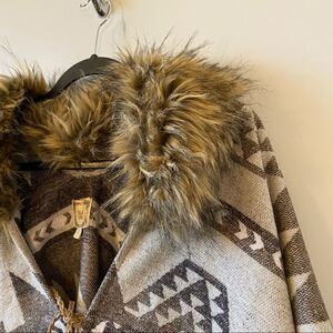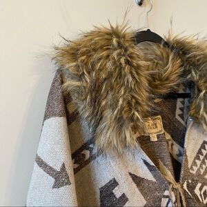 Black Swan-Aztec Faux Fur Collar Fall/Winter Poncho