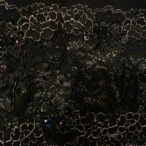 Lace embedded with black sequins on bottom of sleeves and bottom of swetaer.