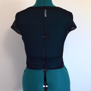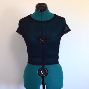 Black Swiss Dot Mesh Sheer Crop Top Baby Tee