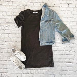 Super cute, comfy t-shirt dress! The sleeves have a cute, little ruching detail.