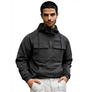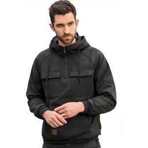 Black Tactical Hoodie for Men Quarter Zip Cargo Pullover Outdoor Sweatshirt