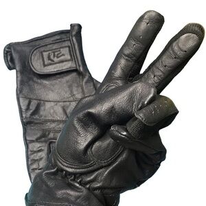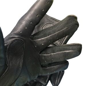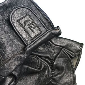 These black motorcycle gloves are designed for durability and protection, featuring reinforced panels and full-finger coverage. The gloves offer padded knuckles and palms for added safety and comfort during rides. With a short cuff design, they provide a secure fit while maintaining a sleek, tactical look.