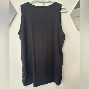Black tank top from warehouse one. Great used condition, no longer fits me. Size XXL. Has some flattering bunching/ruching on the sides.