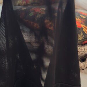 Just a simple black tank top that's been worn and washed a few times. In good condition. The bottom part is semi-transparent (please zoom in on model pic to see what I mean). The top part is not see-through though. I'm a size small normally, but they only had medium left and this actually still fits perfectly.