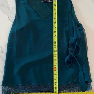 Black Tape - Sleeveless Top, Side Tie at Front, Jewel Green, Flowy Lace - Size S