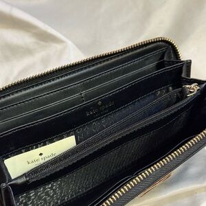 Sleek black textured wallet with a zip closure. Perfect for organizing essentials.